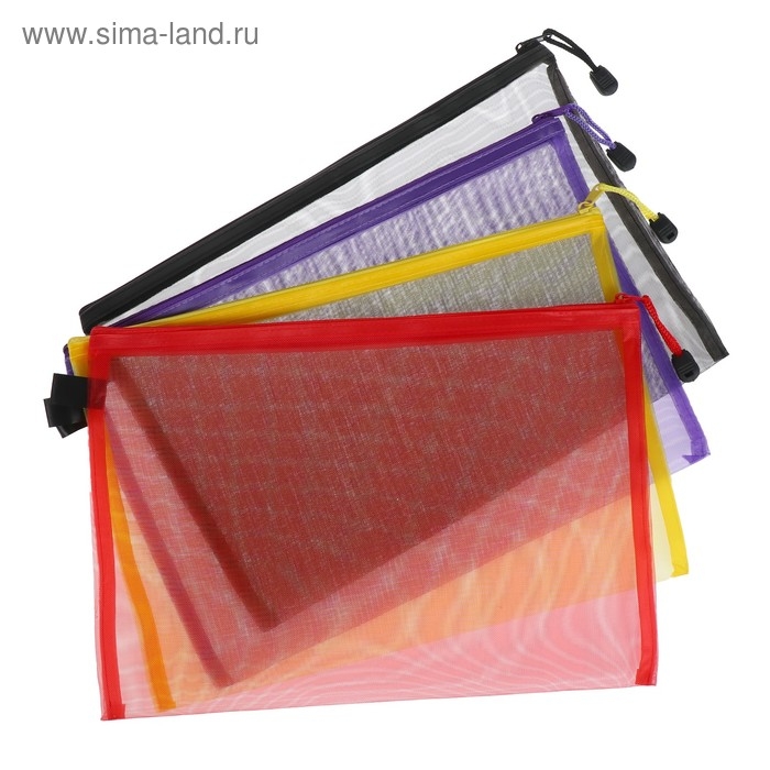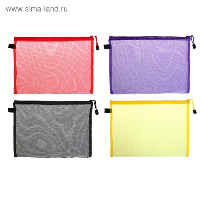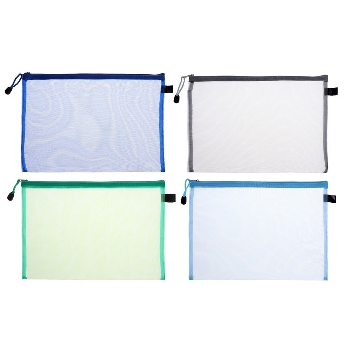Папка-конверт на молнии Calligrata "Полоска - сеточка" А4, с сеткой внутри, МИКС