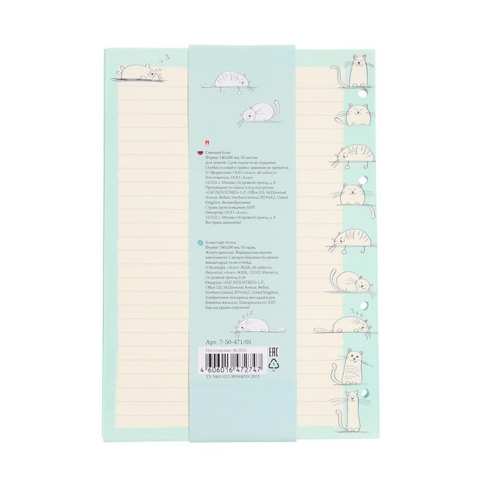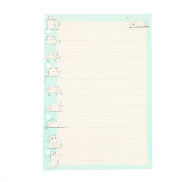 Сменный блок для тетрадей на кольцах А5, 50 листов в линию "Довольные коты", тонированный, 70 г/м2