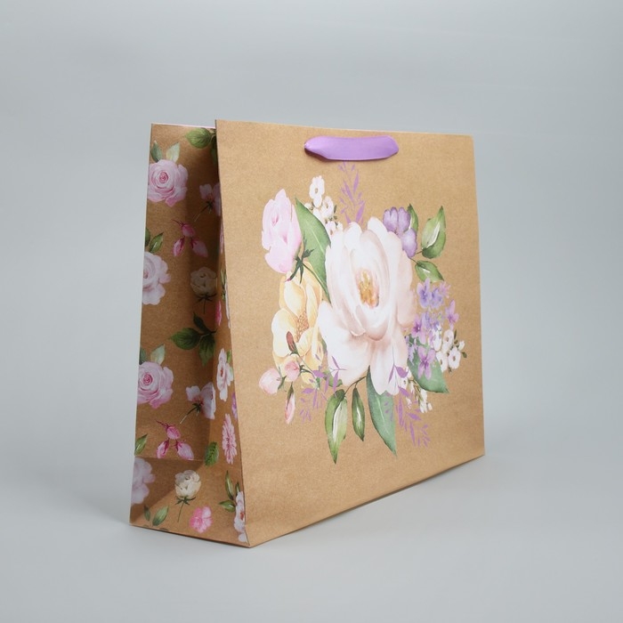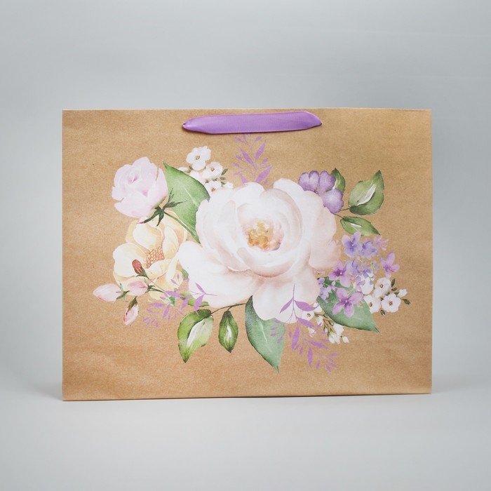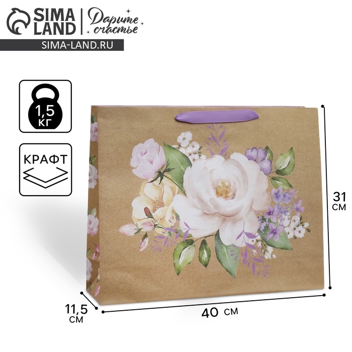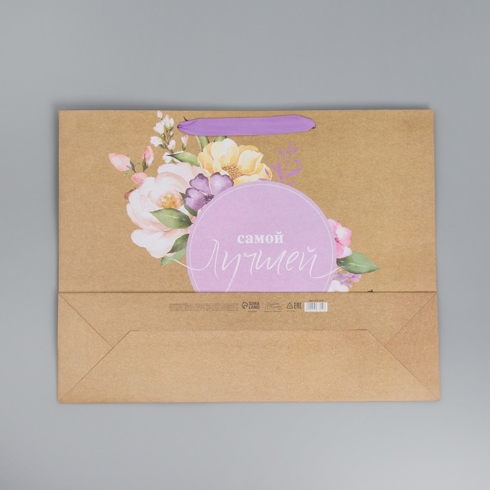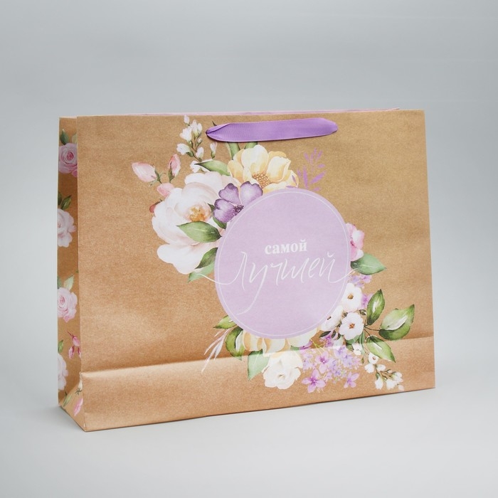 Пакет подарочный крафтовый горизонтальный, упаковка, «Самой Лучшей», L 40 х 31 х 11,5 см