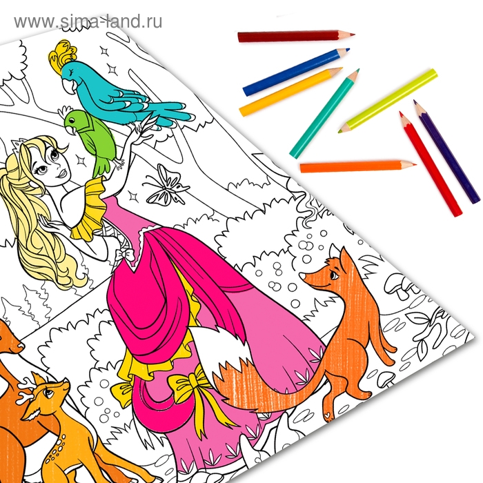 - Плакат большого размера предоставляет обширное поле для раскрашивания, где малышка может экспериментировать с карандашами или акварелью.