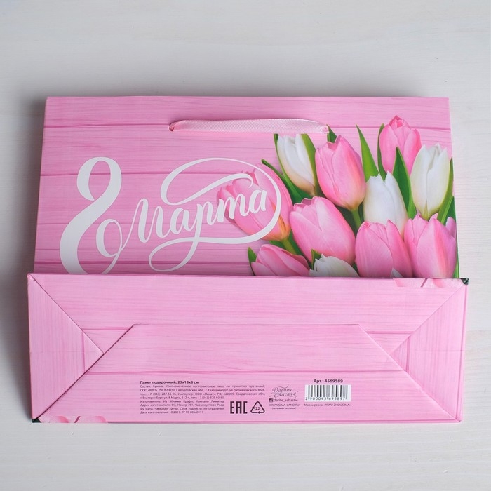 Пакет подарочный ламинированный горизонтальный, упаковка, «Женский день», MS 23 х 18 х 10 см