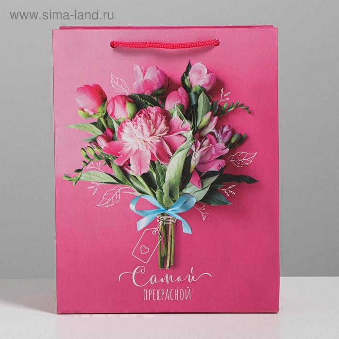 Пакет подарочный ламинированный вертикальный, упаковка, «Самой прекрасной», MS 18 х 23 х 8 см