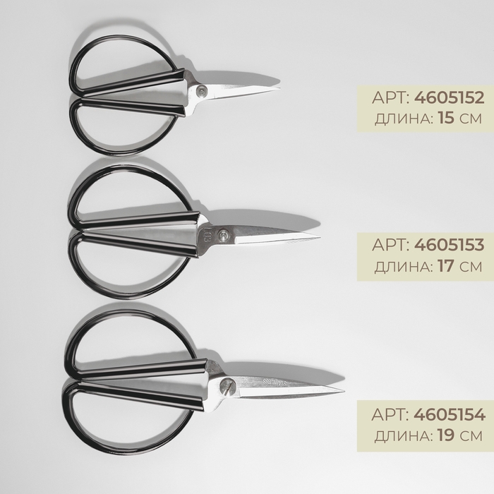 Ножницы для рукоделия, скошенное лезвие, 6,5", 17 см, цвет серебряный