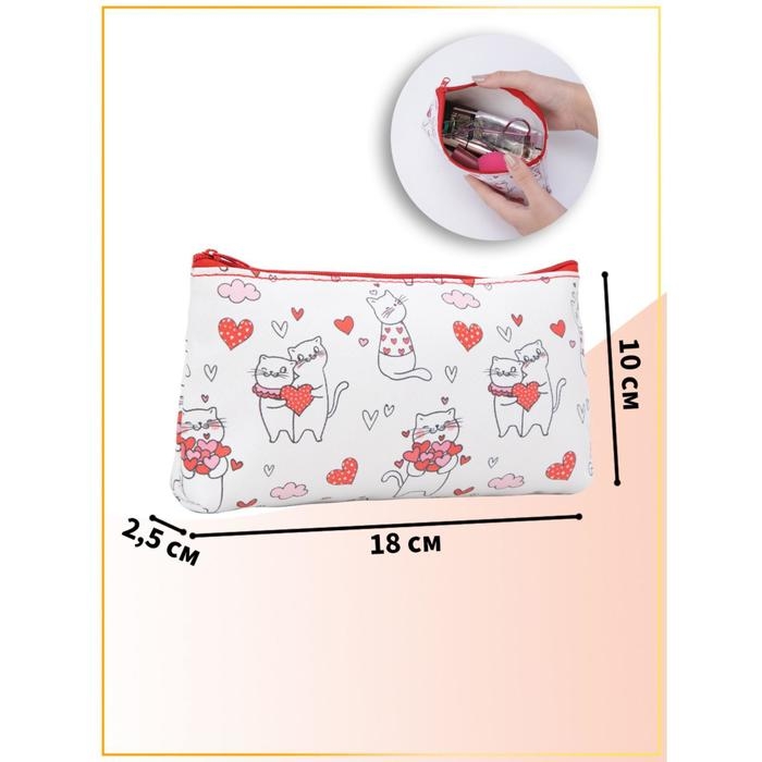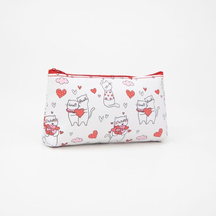 Косметичка на молнии, цвет белый/красный