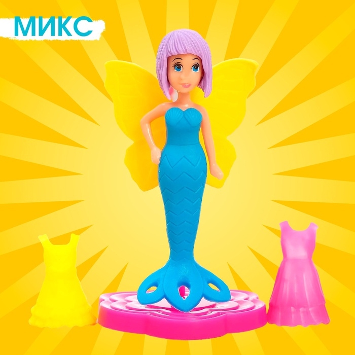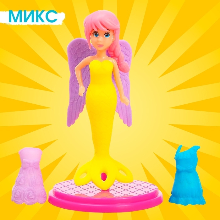 У куколки длинные, цветные волосы. Нежное платье и крылышки создают сказочный образ. В комплекте 2 дополнительных платья и подставка. Крылья снимаются. Кукла полностью разбирается, одежда снимается.