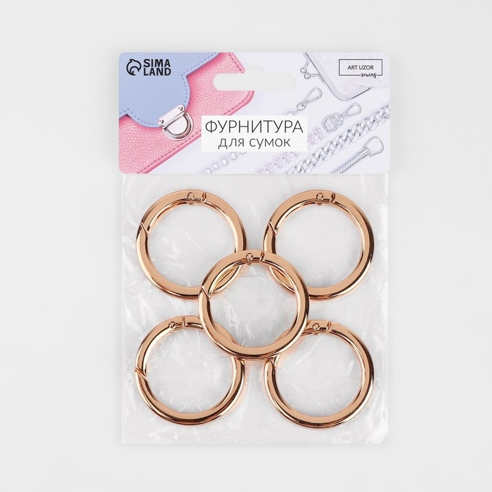 Кольцо-карабин плоский, d = 32/42 мм, толщина - 5 мм, 5 шт, цвет золотой