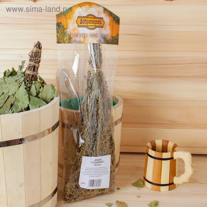 Веник для бани 45 (+-5) см ТРАВЯНОЙ из полыни, в индивидуальной упаковке