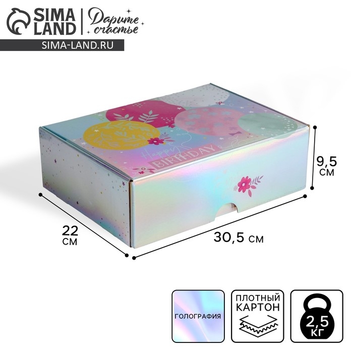 Коробка подарочная складная, упаковка, «Happy Birthday», 30,5 х 22 х 9,5 см