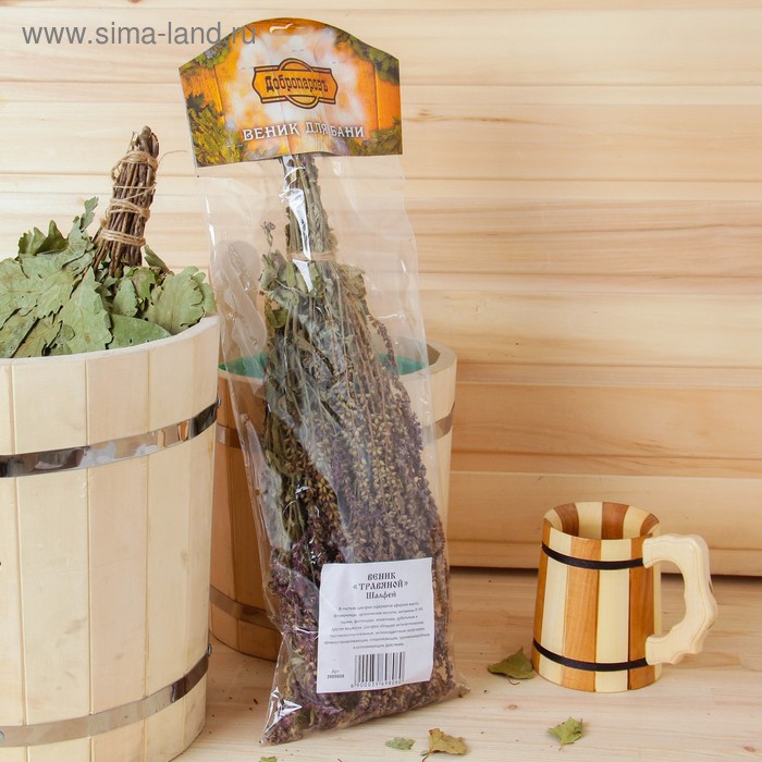 Веник для бани 45 (+-5) см ТРАВЯНОЙ из шалфея, в индивидуальной упаковке