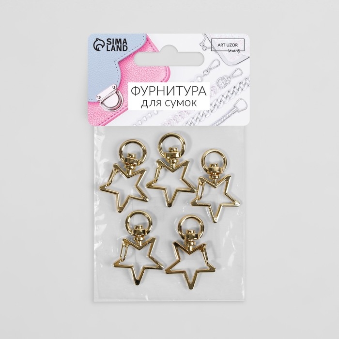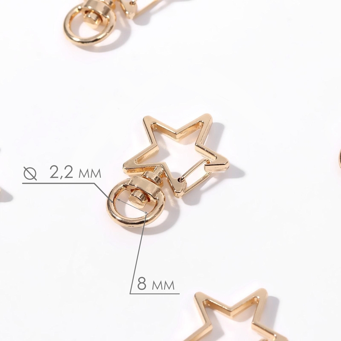 Карабин металлический «Звезда», 34 × 24 мм / 8 × 2,2 мм, 5 шт, цвет золотой