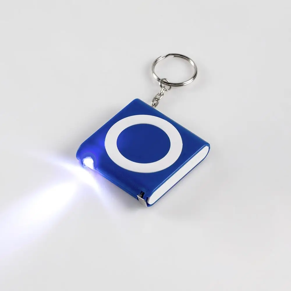 Компактный брелок со встроенной рулеткой и фонариком.
