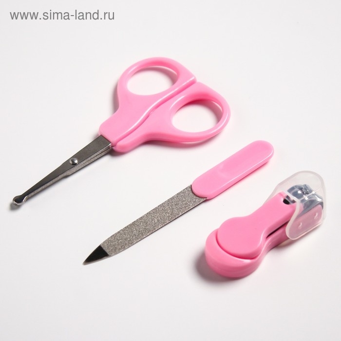 Детский маникюрный набор (ножницы, книпсер, пилка), цвет розовый