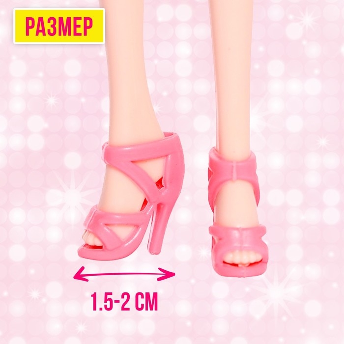 - Обувь выполнена из прочного пластика и повторяет дизайн настоящей женской обуви.
