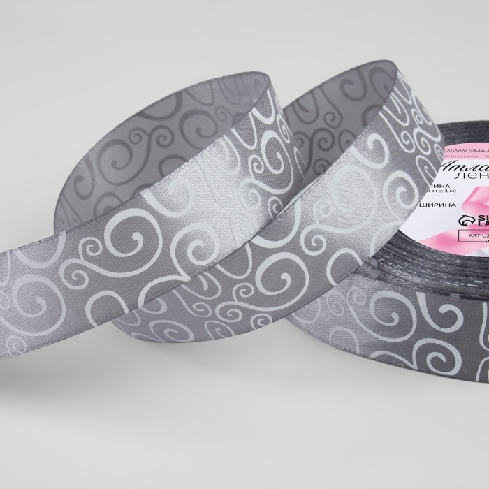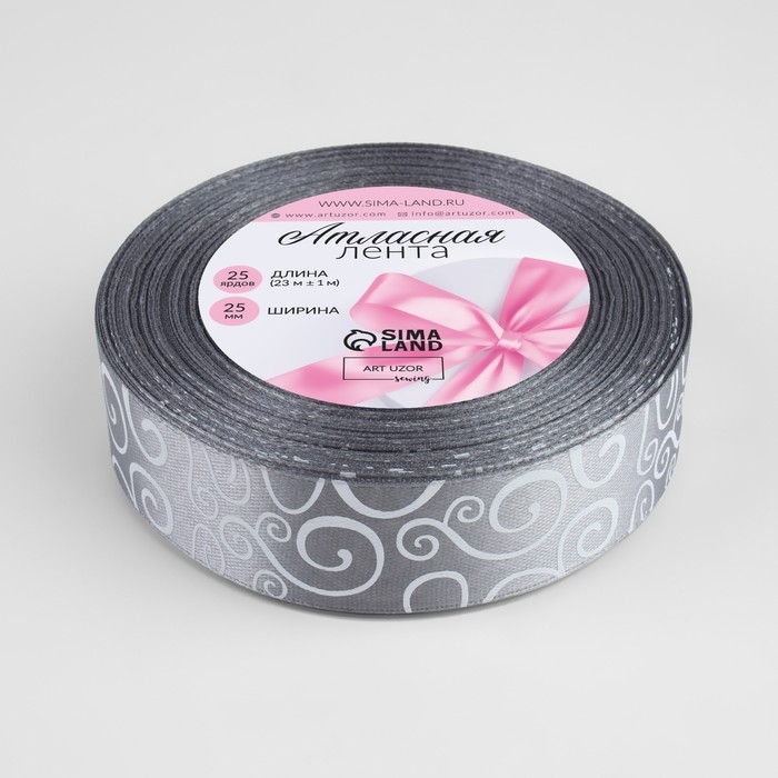 Лента атласная «Узоры», 25 мм × 23 ± 1 м, цвет тёмно-серый №059
