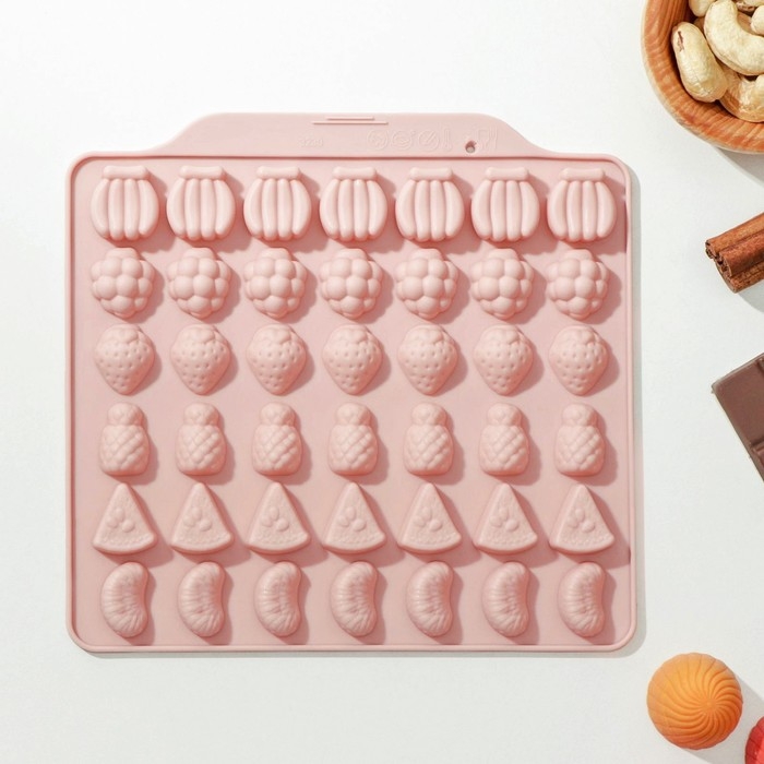 Форма для мармелада Доляна «Фруктовый бум», силикон, 18,5×17,5 см, 42 ячейки (2,2×2,2 см), цвет розовый