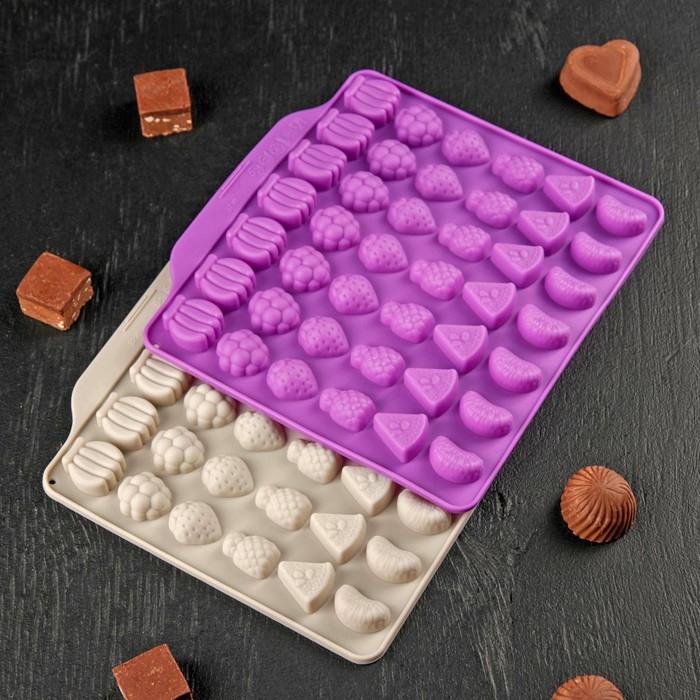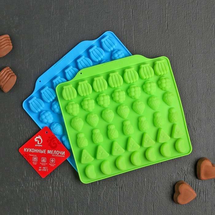 Форма для мармелада «Сладкоежка», силикон, 19,5×13,6×1 см, 45 ячеек, цвет МИКС