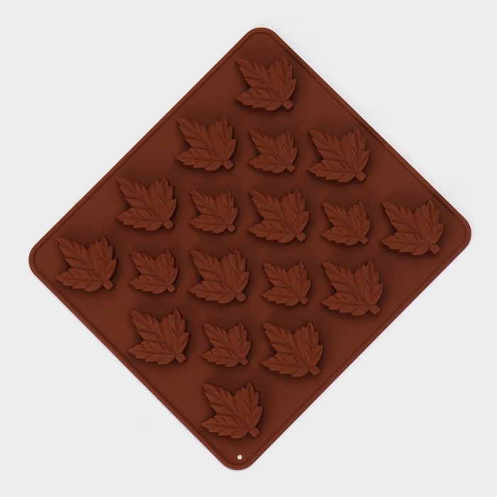 Форма для конфет и шоколада Доляна «Кленовый сироп», силикон, 19,5×17,7×1 см, 18 ячеек, цвет коричневый