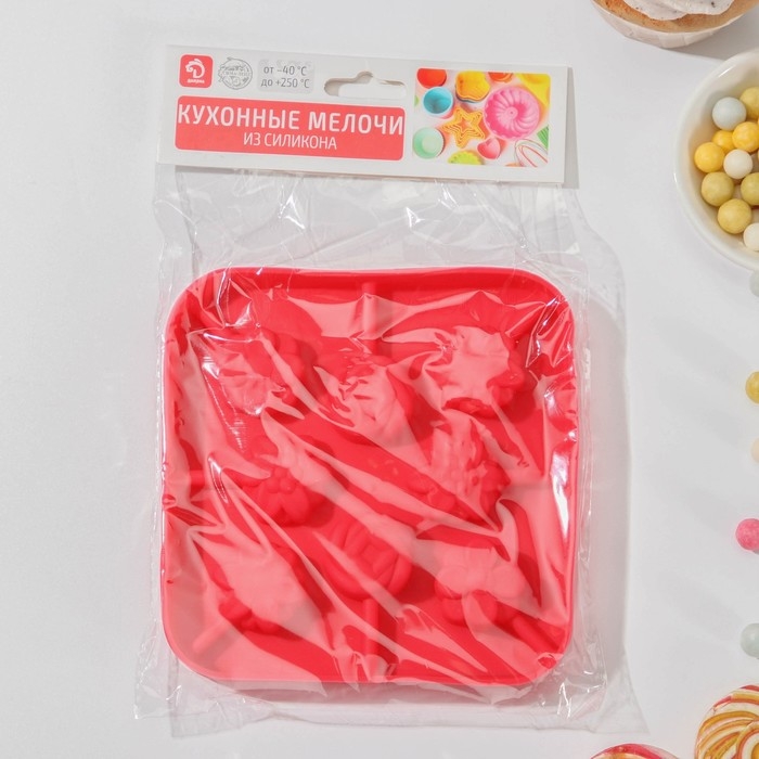 Форма для леденцов «Зверята», силикон, 14×14×1,4 см, 8 ячеек, с палочками, цвет МИКС
