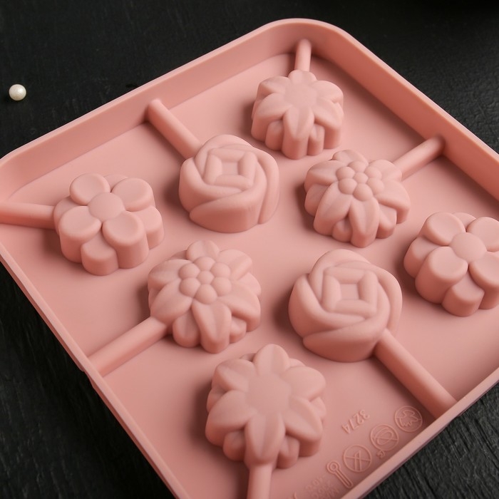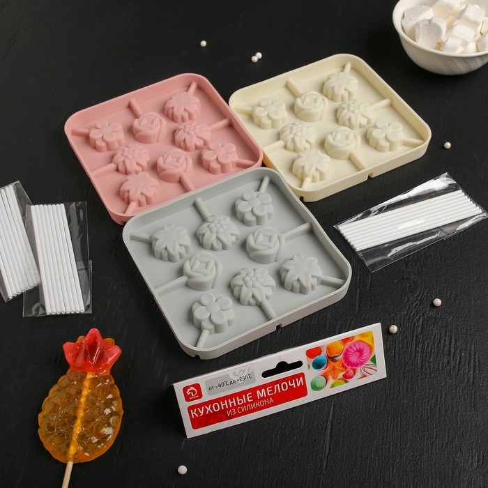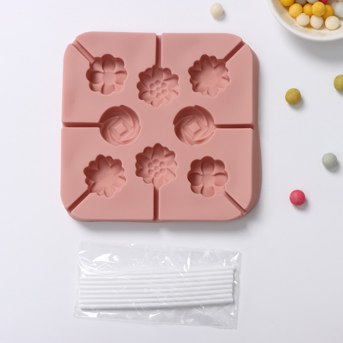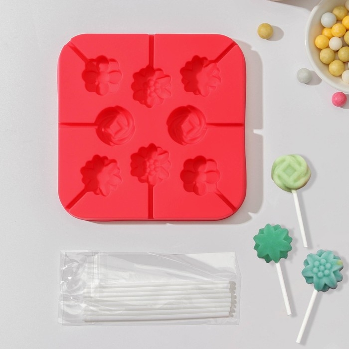 Форма для леденцов Доляна «Летний полдень», силикон, 12,5×12,5×1,5 см, 8 ячеек (2,7×2,7 см), с палочками, цвет МИКС