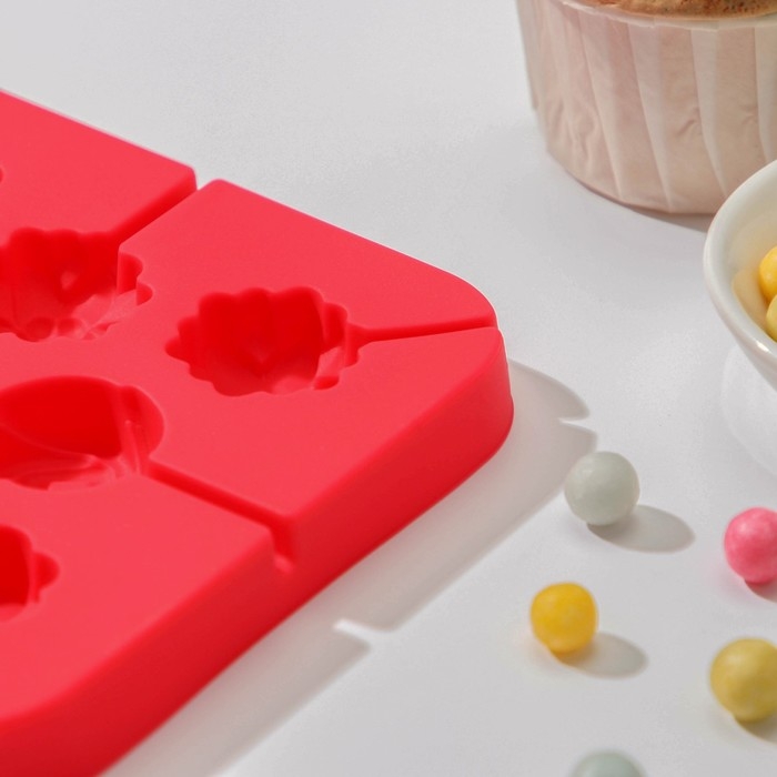 Форма леденцов Доляна «Поцелуй», силикон, 28,5×16 см, 10 ячеек (6×3см), с палочками, цвет МИКС