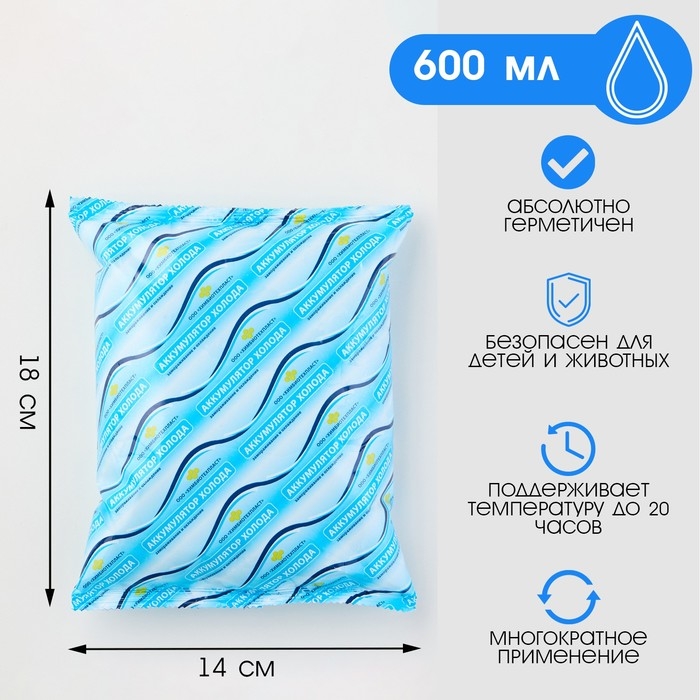 Аккумулятор тепла/холода, он же хладоэлемент и холодоаккумулятор, предназначен для поддержания высокой или низкой температуры в контейнерах из вспененных материалов, сумках-холодильниках и термопакетах. Он равномерно распределяет холод или тепло внутри термосумки, не протекает, обеспечивает долговременное охлаждение продуктов.