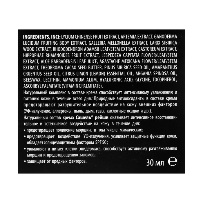 Крем гипоаллергенный, косметический натуральный «Сашель Рейши» дневной, 30 мл