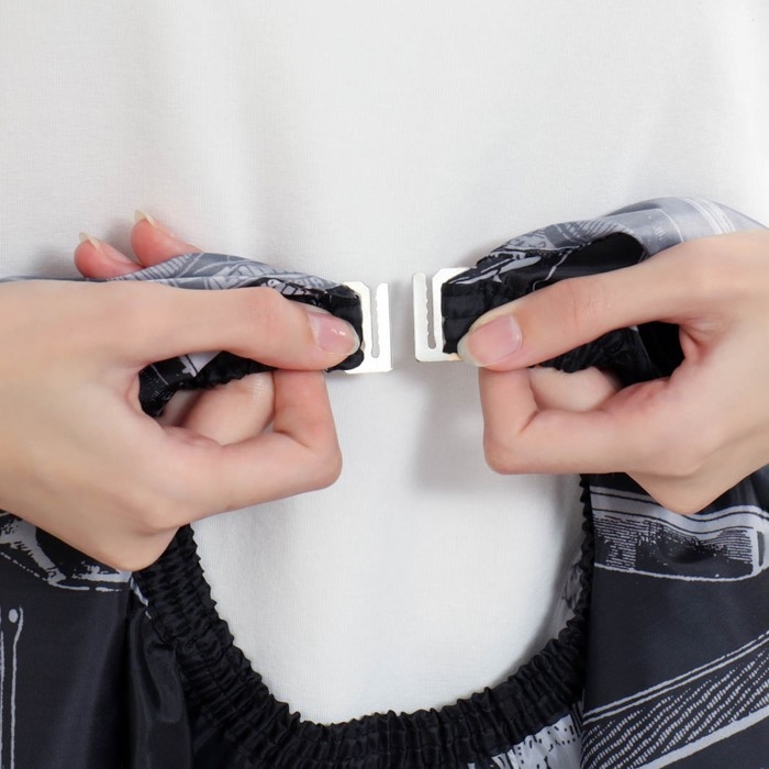 Пеньюар защитит одежду клиента от попадания волос, воды, краски и других составов. Он мягко обхватит шею без утяжеления. Универсальный размер подойдёт людям всех пропорций. Не использовать высокие температуры для разглаживания пеньюара. Рекомендуется использовать метод отпаривания.