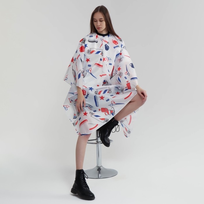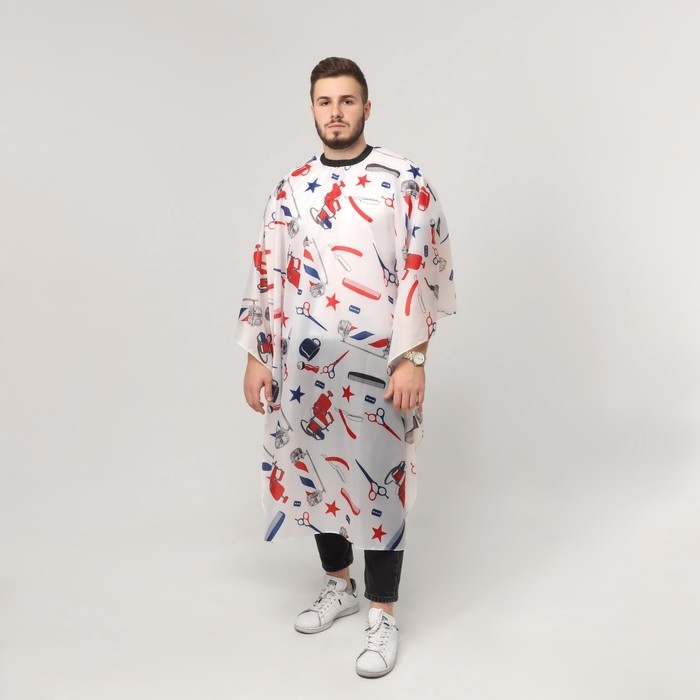 Пеньюар парикмахерский, цвет белый/синий/красный