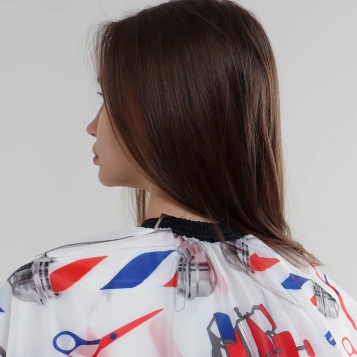 Пеньюар защитит одежду клиента от попадания волос, воды, краски и других составов. Он мягко обхватит шею без утяжеления. Универсальный размер подойдёт людям всех пропорций. Не использовать высокие температуры для разглаживания пеньюара. Рекомендуется использовать метод отпаривания.