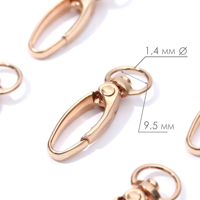 Карабин металлический, 36 × 12 мм / 9,5 × 1,4 мм, 5 шт, цвет золотой