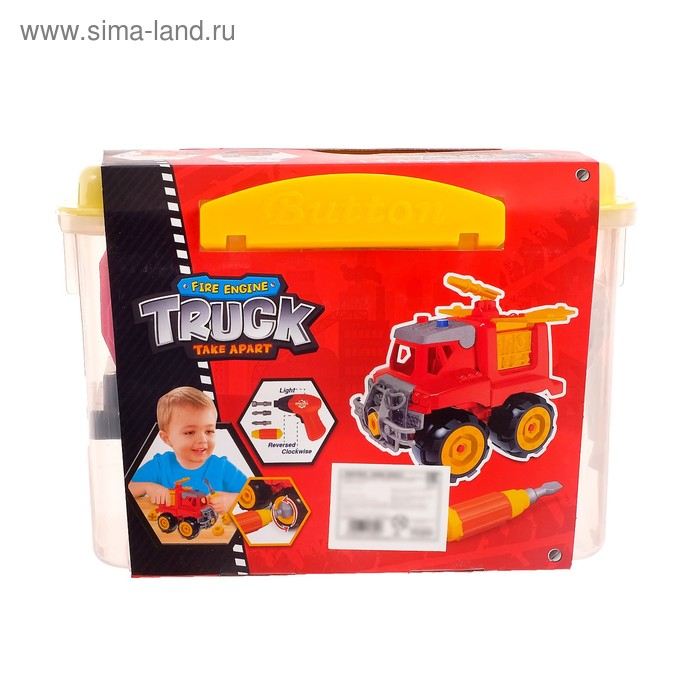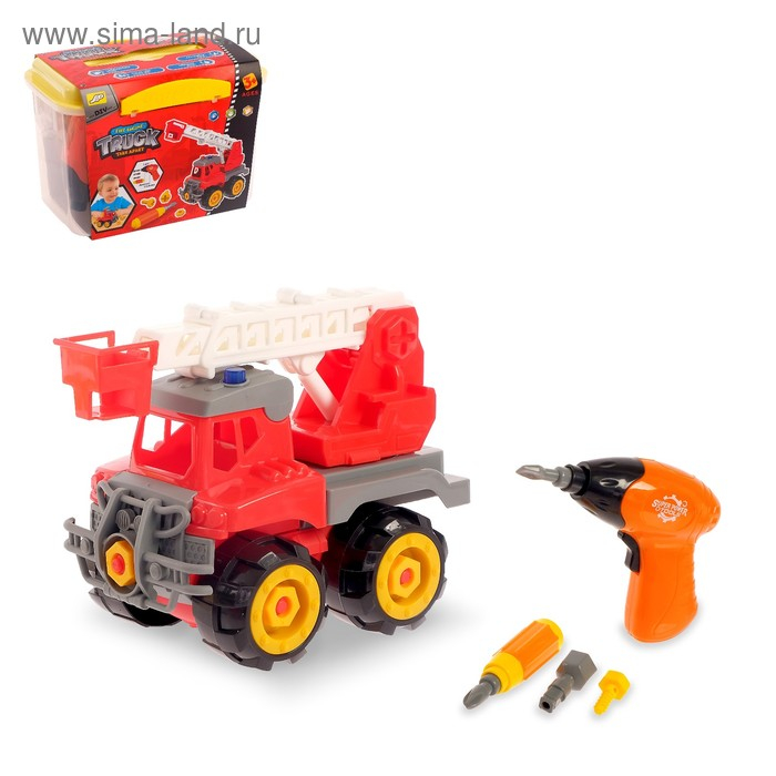 Конструктор винтовой «Пожарная машина», 18 деталей, с электрическим шуруповёртом
