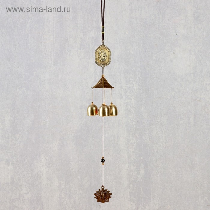 Музыка ветра металл "Ганеша на медальоне" 3 колокольчика 43 см