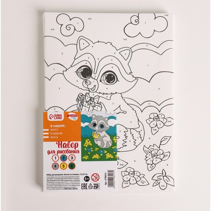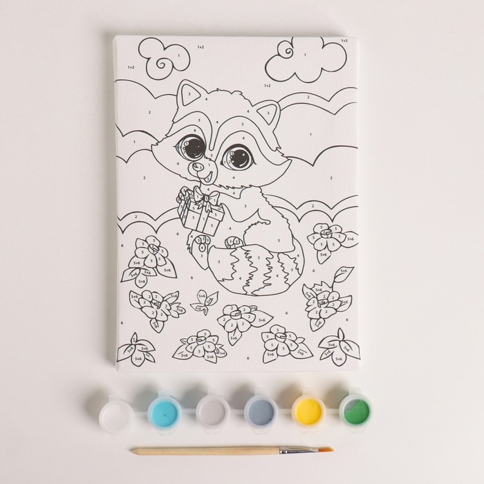 Картина по номерам для детей «Енотик на полянке», 21 х 15 см