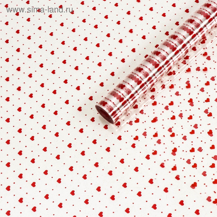 Пленка цветная "Мелкие сердца" ,красный , 70 см