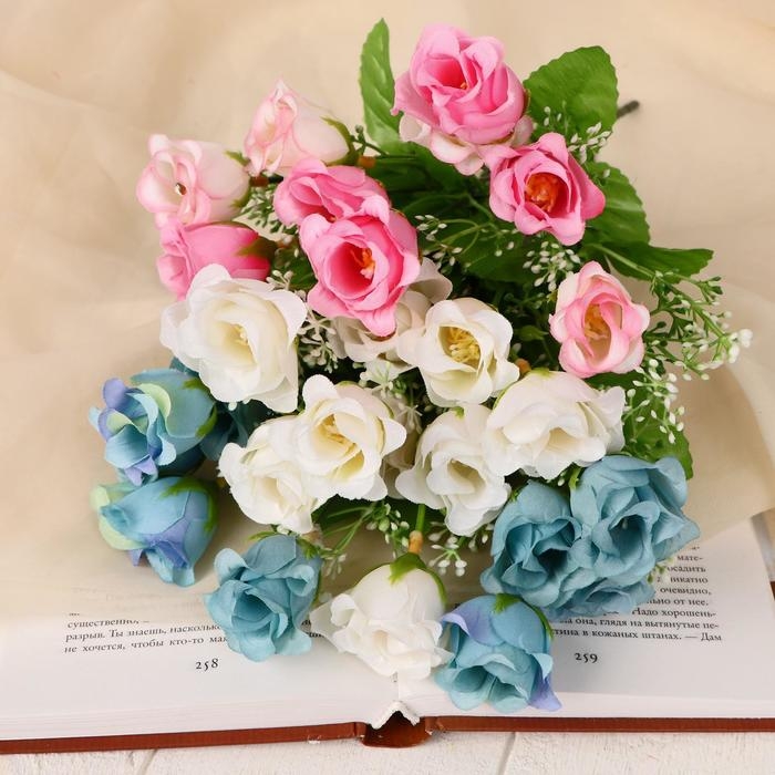 Букет "Розочки с белыми цветочками" 30 см d-3 см, микс