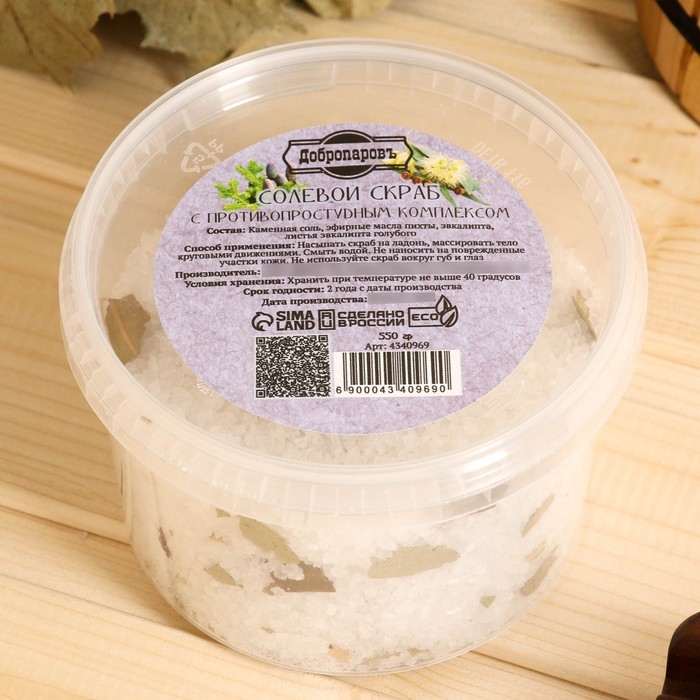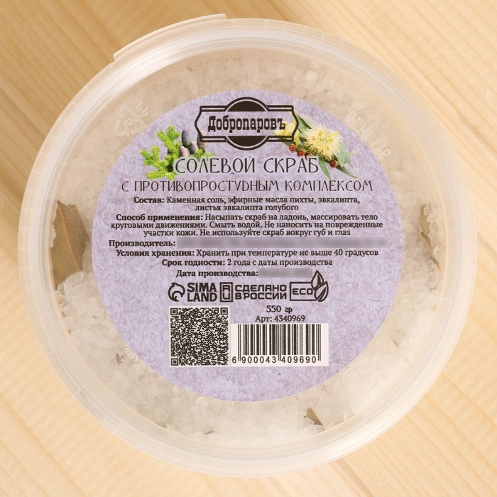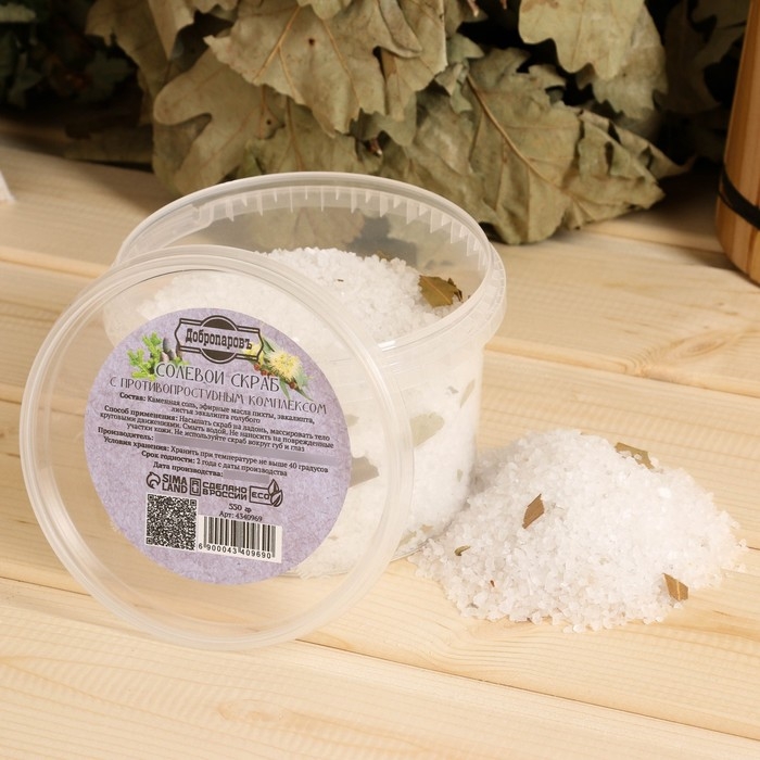 Солевой скраб "Добропаровъ" из белой каменной соли с противопростудным комплексом, 550 гр
