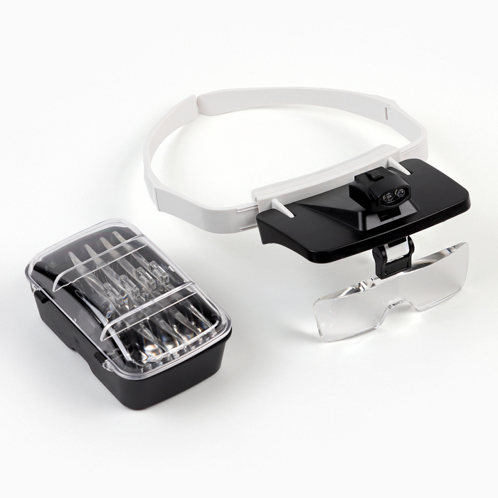 Лупа налобная 1.5-3.5х бинокулярная, с подсветкой, 5 линз в комплекте
