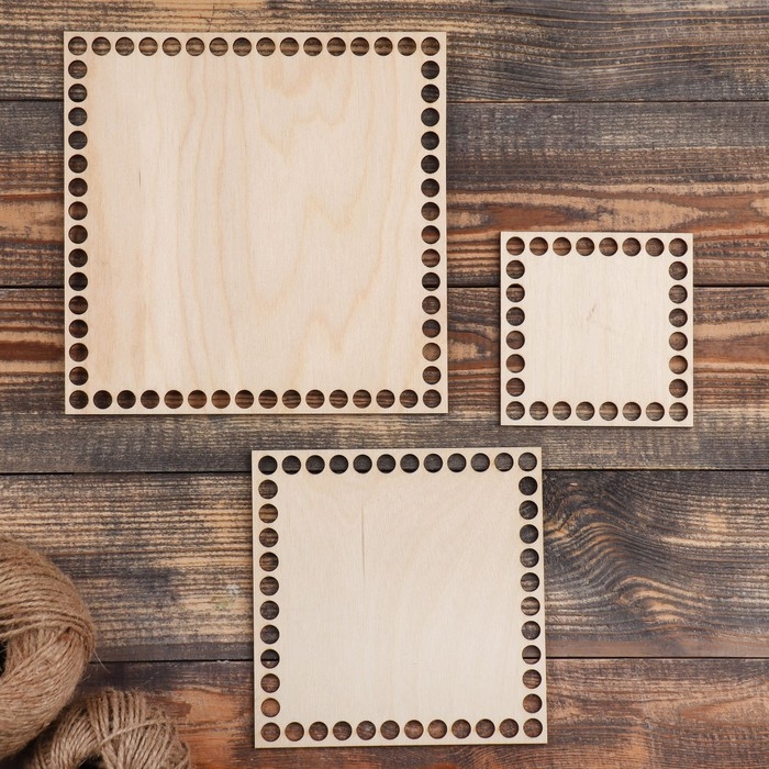 Набор заготовок для вязания "Квадрат", донышко фанера 3 мм (3 в 1), 10/15/19.5 см, d=9мм