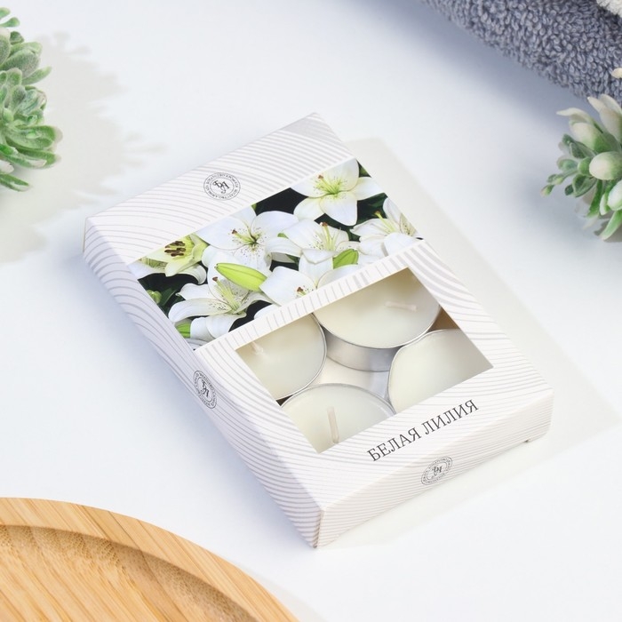 Набор чайных свечей ароматизированных "Белая лилия" в подарочной коробке, 6 шт