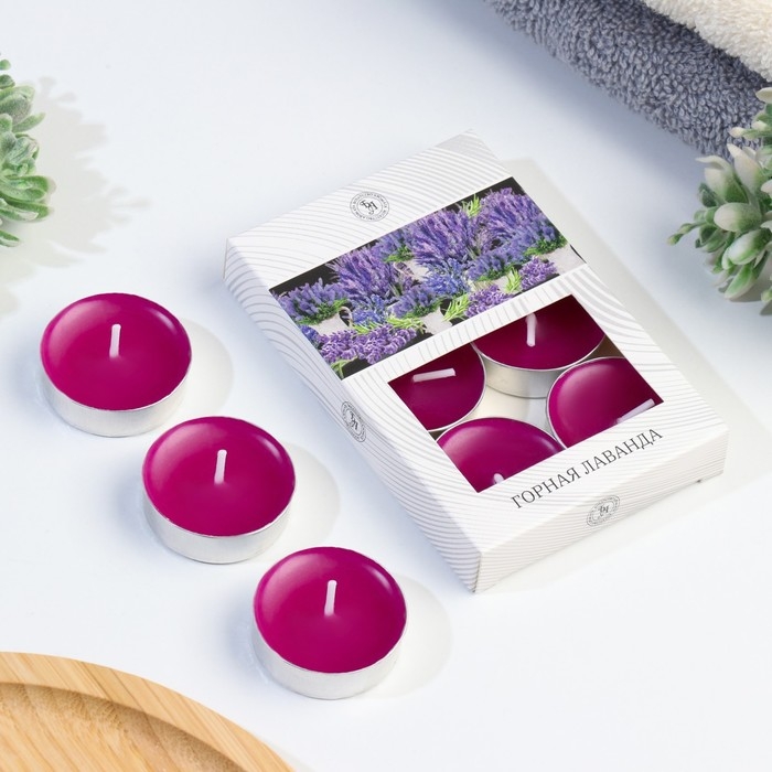 Набор чайных свечей ароматических "Лаванда", 3,8х1,6 см, 3,5 ч, 12 г, 6 штук
