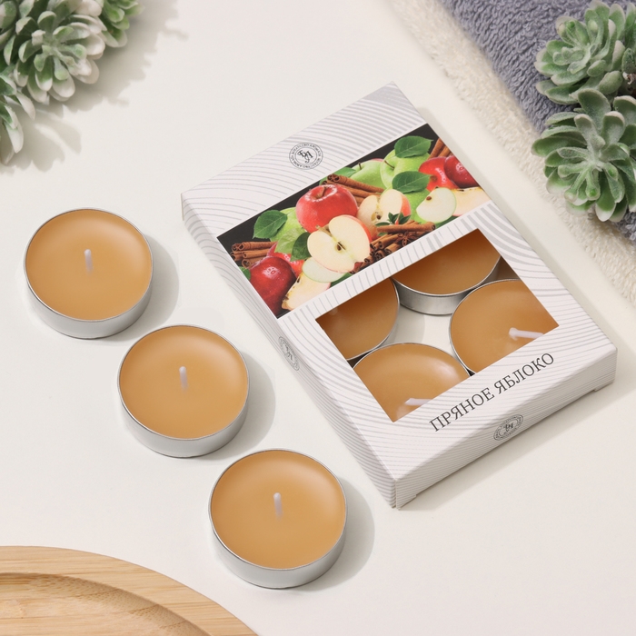 Набор чайных свечей ароматизированных "Пряное яблоко" в подарочной коробке, 6 шт