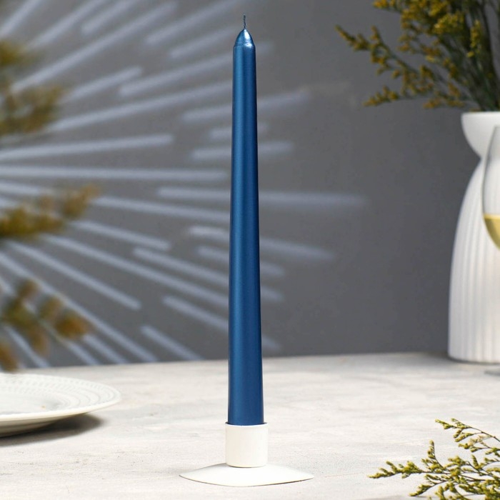 Свеча античная, 2,3х 25 см, лакированная , синий металлик