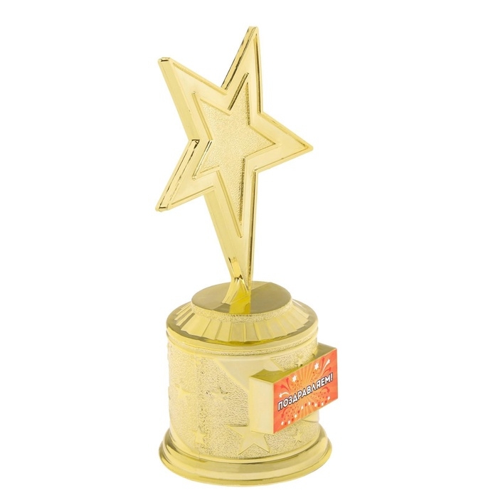 Кубок наградная фигура: звезда «Поздравляем» золото, пластик, 16 х 8,5 х 6 см.