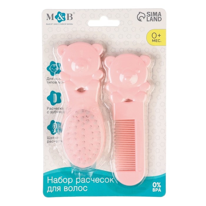 Набор расчесок «Мишка», 2 шт., цвет розовый
