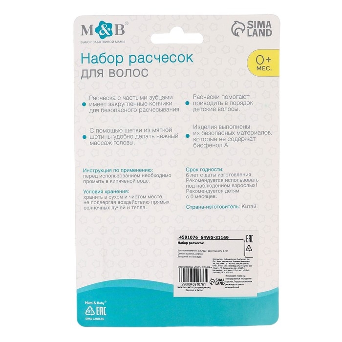 Расческа-щетка с мягкой щетиной и удобная расческа с закругленными зубчиками предназначены для малышей с первых дней жизни.
