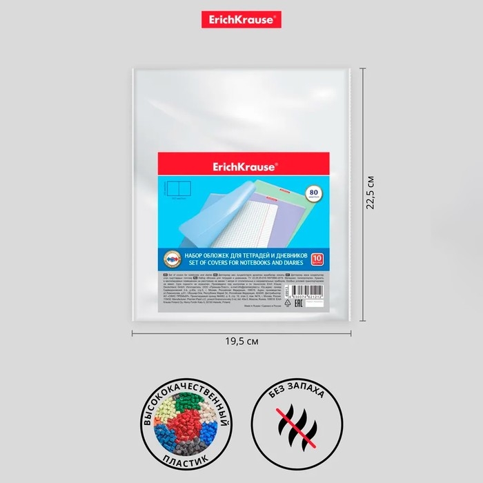 Набор обложек ПП 10 шт, 212 х 347 мм, 80 мкм, ErichKrause, Fizzy Clear, для тетрадей и дневников, с тиснением, фиксированная