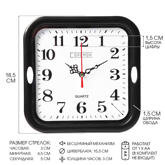 Часы настенные интерьерные "Эшли", бесшумные, 18.5 х 18.5 см