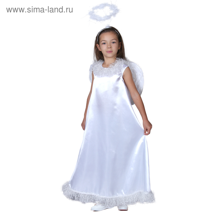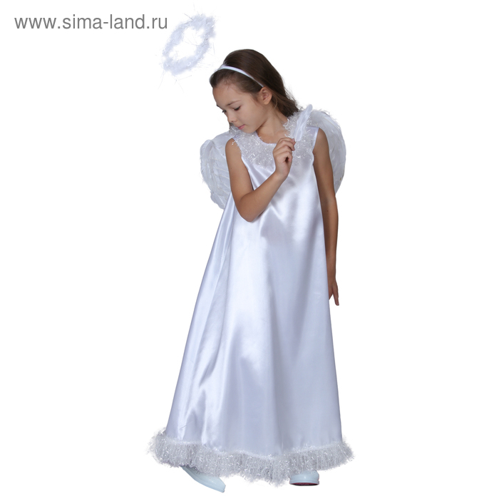 Карнавальный костюм «Белый ангел», нимб, платье, крылья, р. 34, рост 134–140 см