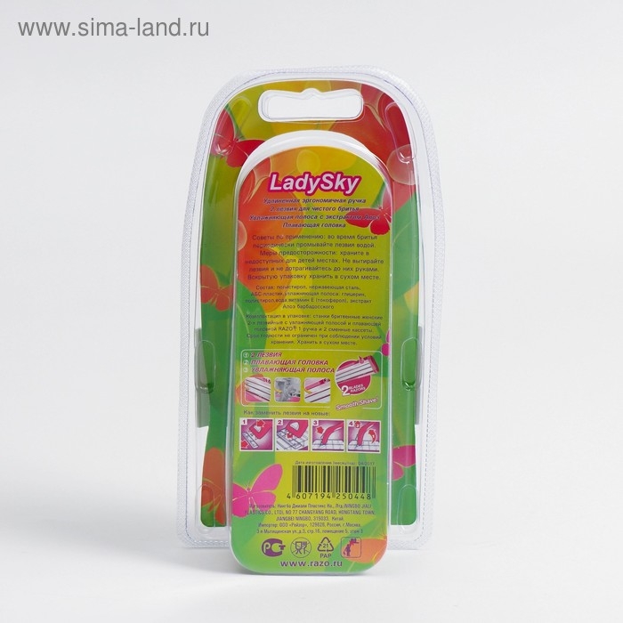 Razo LadySky — это бритвенный станок, предназначенный для женщин. Он оснащен двумя лезвиями и увлажняющей полосой, которая помогает предотвратить раздражение кожи во время бритья. В упаковке содержится два станка.