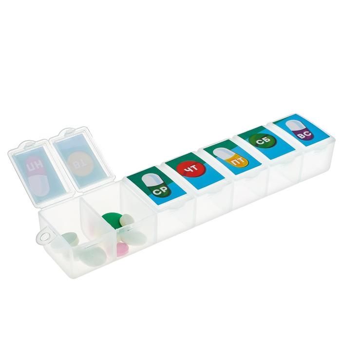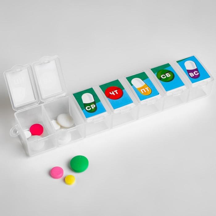 Таблетница «Неделя», 7 секций, русские буквы, 15,5 х 3,4 см.